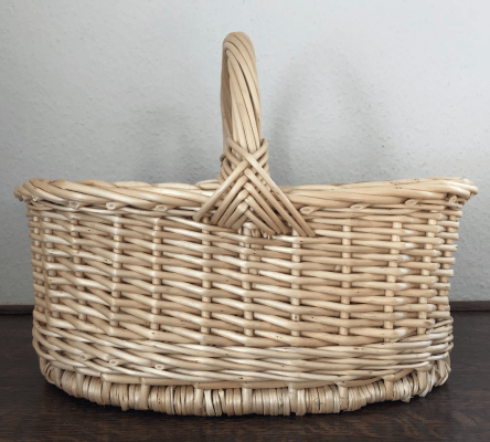 Aussi appelé mandelette ronde, ce panier a une forme boule généreuse pour y nicher votre cueillette ou vos affaires pour la journée.