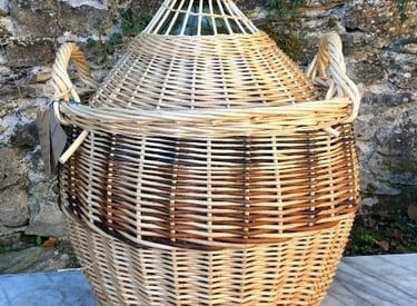 Je peux habiller vos bonbonnes ou la fournir avec son habillage. L'habillage en osier est une protection durable et esthétique pour manipuler la bonbonne en sécurité, avec couvercle amovible et deux poignées.
